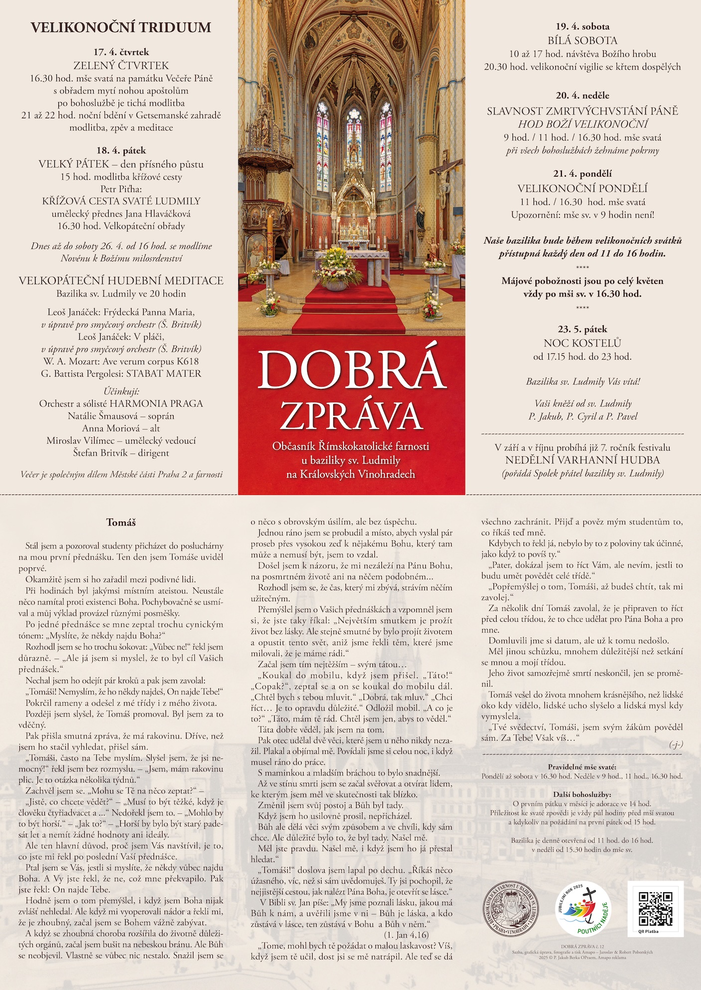 V těchto dnes naleznete v bazilice – a také zde na webu – nové číslo občasníku naší farnosti. Kromě přehledu bohoslužeb a koncertů v období Svatého týdne a Velikonoční doby se můžete začíst také do příběhu o Tomášovi.