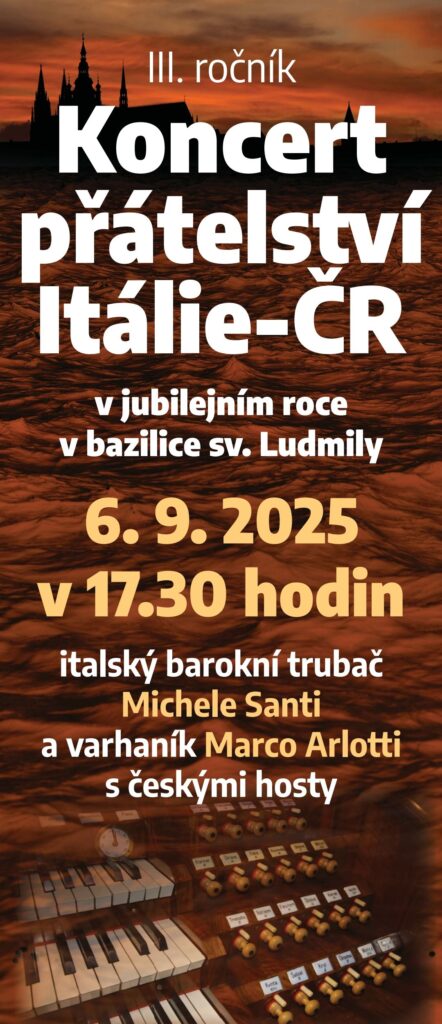 V sobotu 6. září 2025 v 17.30 hodin se konal v bazilice sv. Ludmily na Vinohradech Koncert přátelství Itálie-ČR.