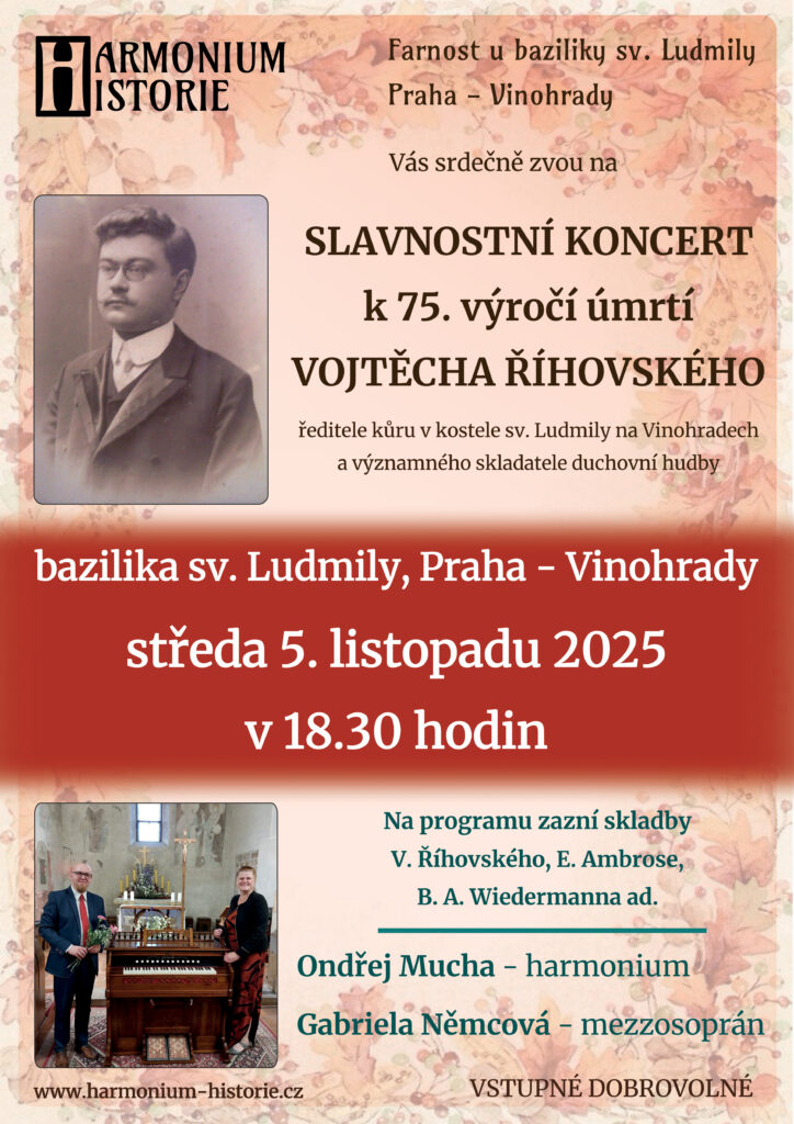 Srdečně vás zveme na Slavnostní koncert k 75. výročí úmrtí Vojtěcha Říhovského, ředitele kůru v kostele sv. Ludmily na Vinohradech a významného skladatele duchovní hudby.